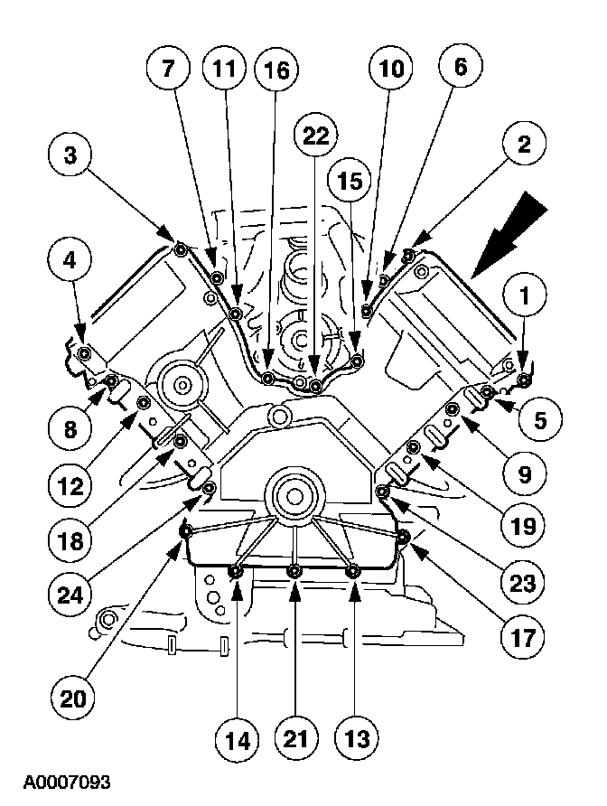 19. Remove the engine front cover bolts in the sequence shown.