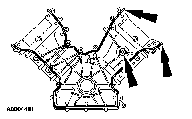 3. NOTE: If the front cover is not secured within 4 minutes of sealant application, the sealant must be removed and the sealing area cleaned with metal surface cleaner. Allow to dry until there is no sign of wetness, or 4 minutes, whichever is longer. Failure to follow this procedure can cause future oil leakage.