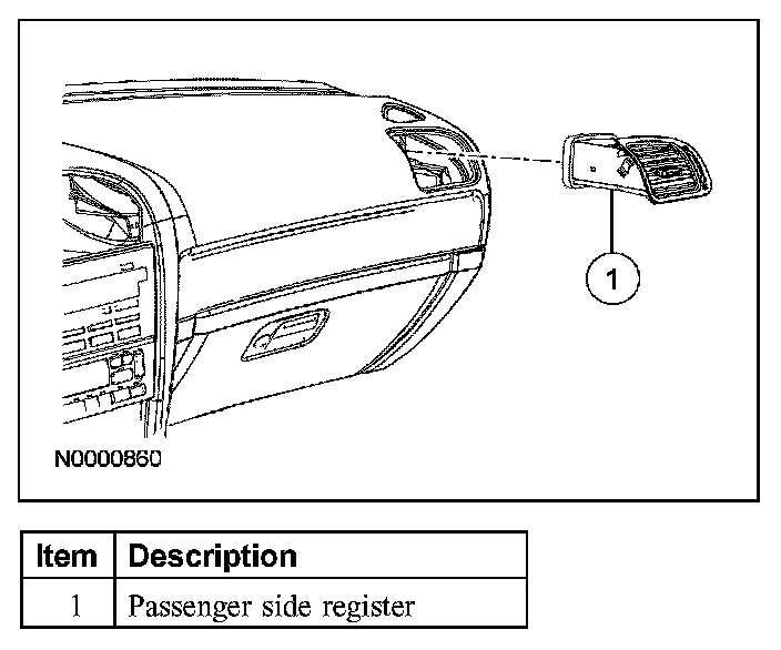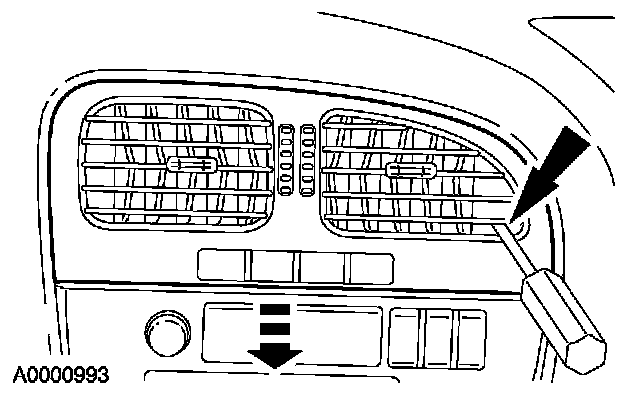 1. Using a flat screwdriver to depress the tabs, remove the passenger side register.