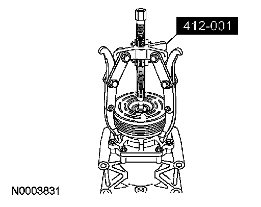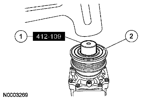 1. NOTE: The A/C clutch components should be reused unless obvious signs of damage are found. If excessive grooving is found, a new A/C clutch disc and hub and a new A/C compressor pulley must be installed together. Otherwise, each component can be installed individually where needed.