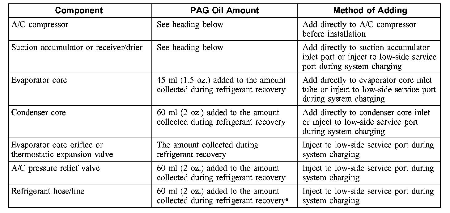 Refrigerant Oil Adding for New Suction Accumulator or Receiver/Drier Installation