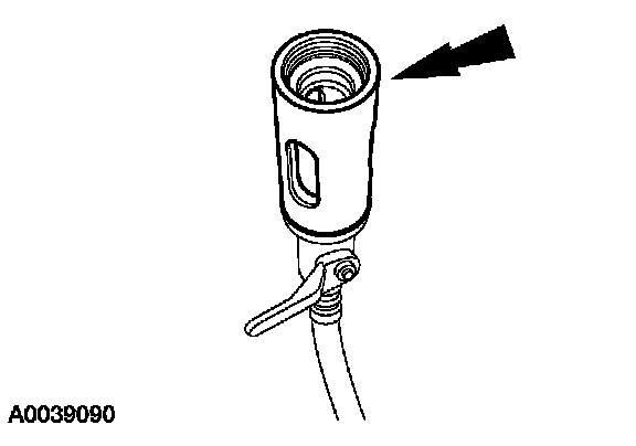 5. Install the dye/lubricant injector between the low-side service gauge port valve and the refrigerant service station or manifold gauge set.