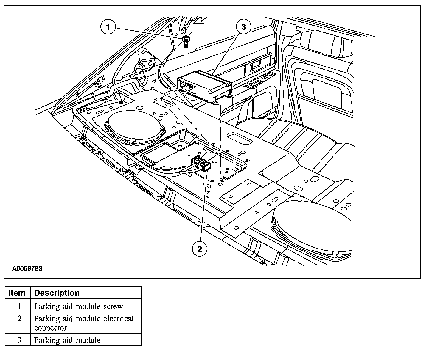 2. Remove the parking aid module and the screw.