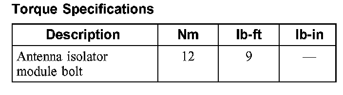 Torque Specifications: