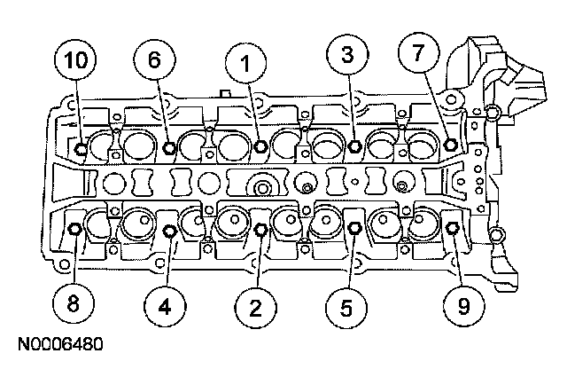 Install and tighten the RH head bolts in 4 stages in the sequence shown.