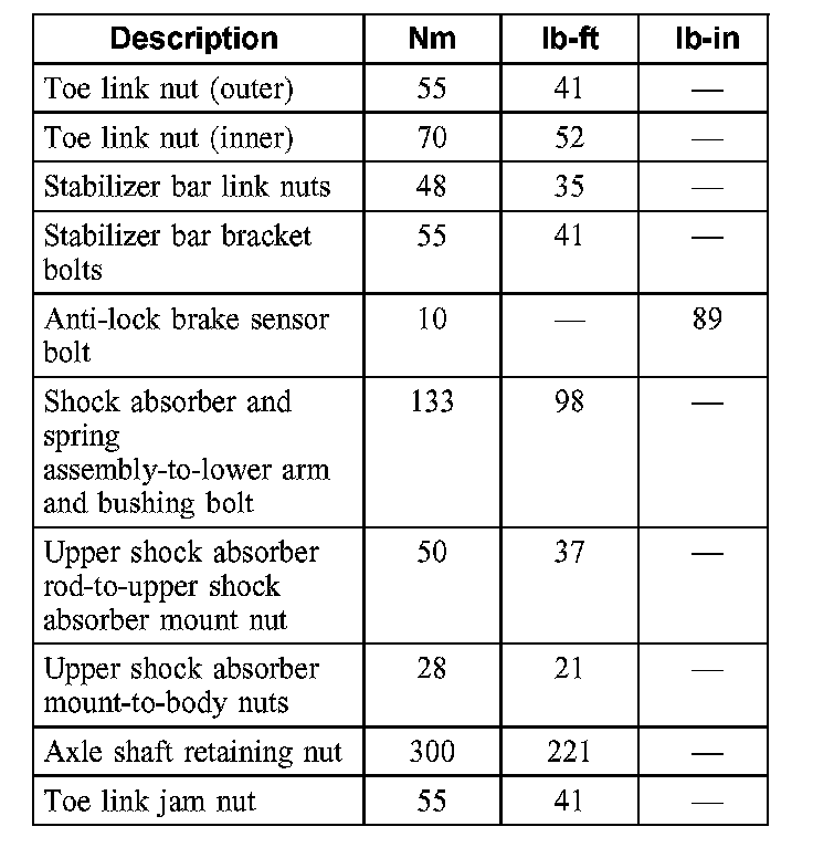 Torque Specifications