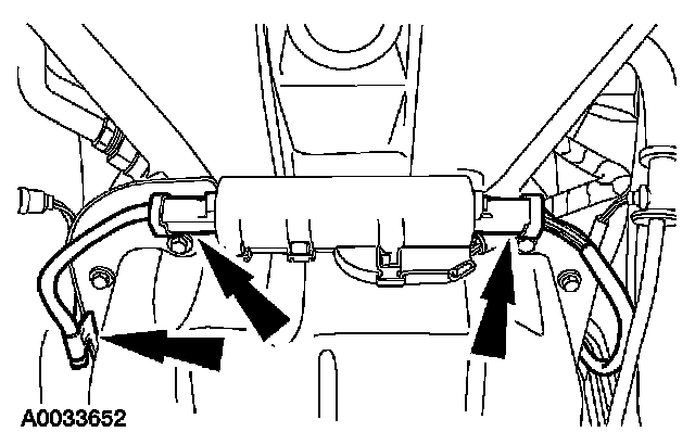 7. Remove the heated oxygen sensor connector from the front of the transmission pan rail.