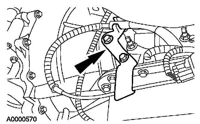 12. Disconnect the wire harness from the top of the transmission shift cable bracket.