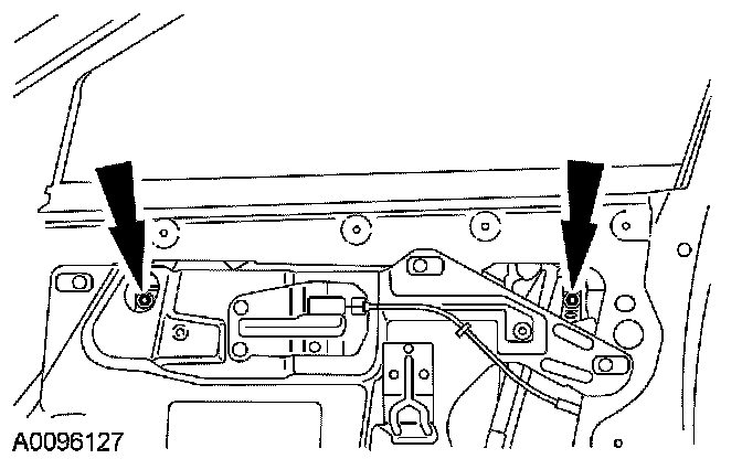 6. Using the window control switch, position the front door window regulator-to-glass clamp bolts to align with the access holes.