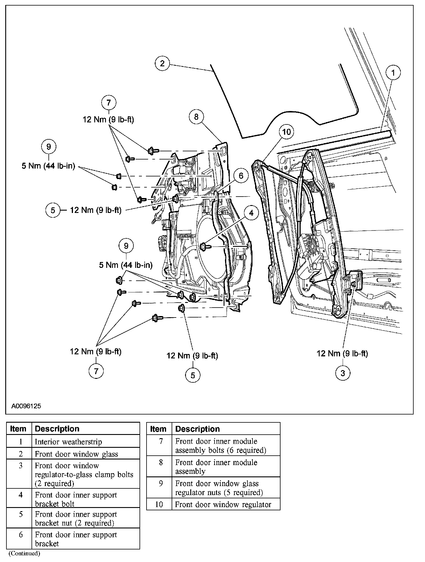 FRONT DOOR WINDOW REGULATOR AND MOTORRemoval and Installation