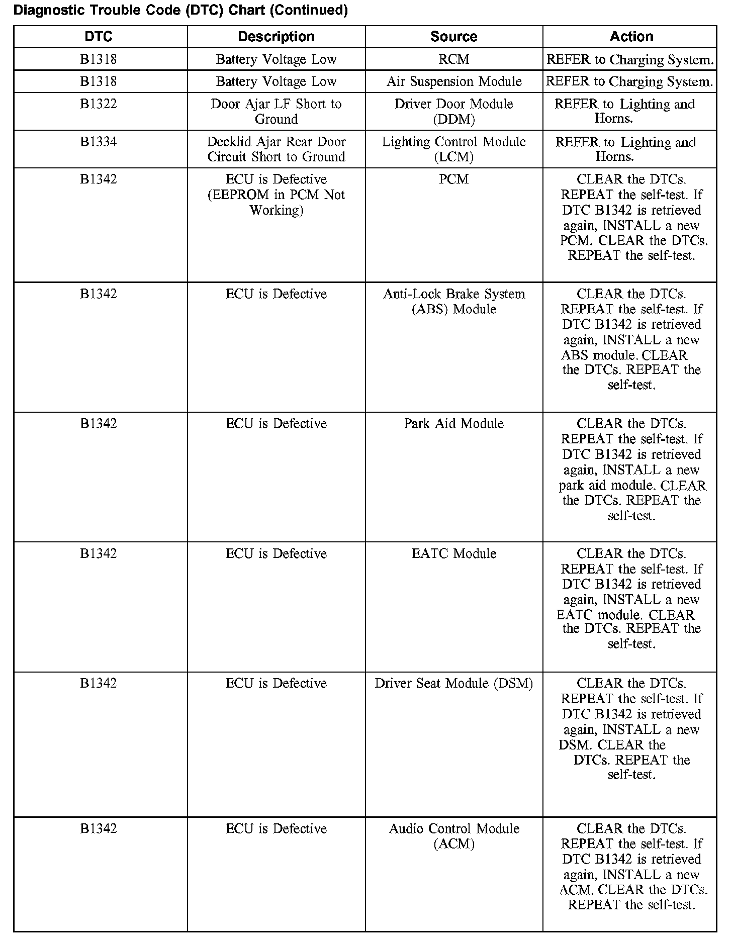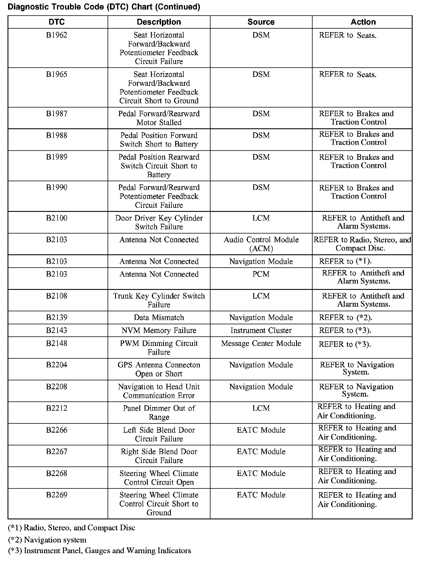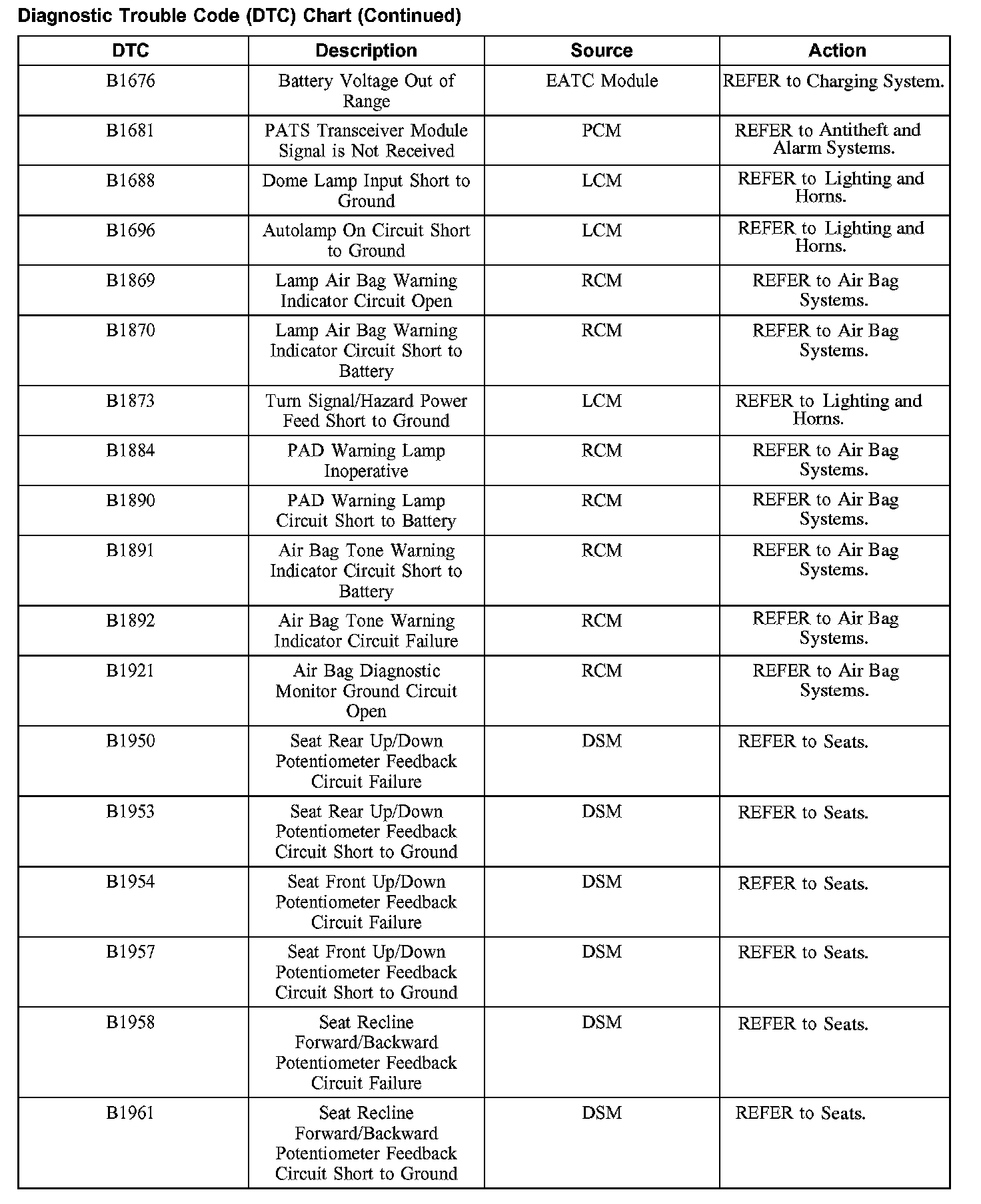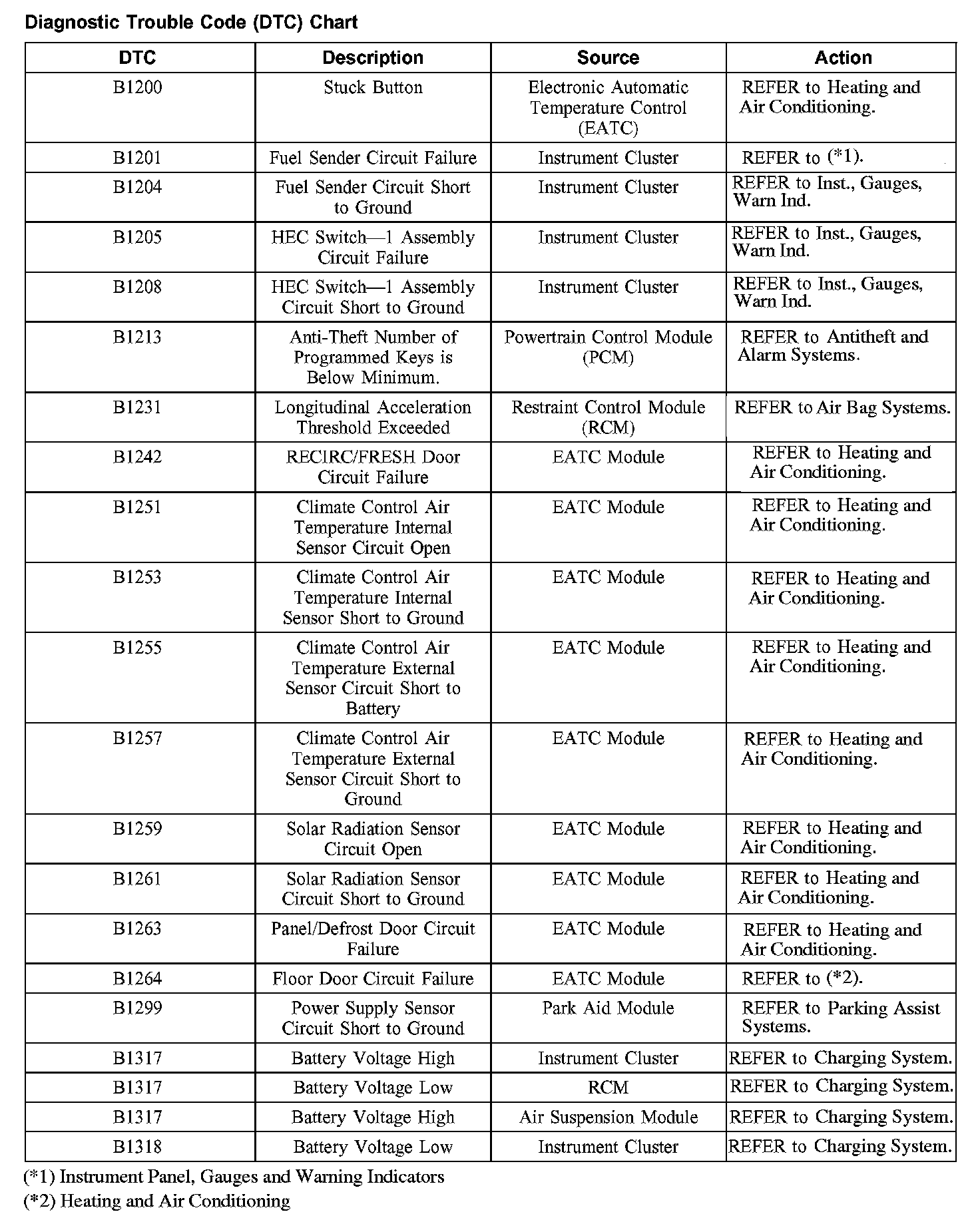 DIAGNOSTIC TROUBLE CODE (DTC) CHARTB1200-B1318: