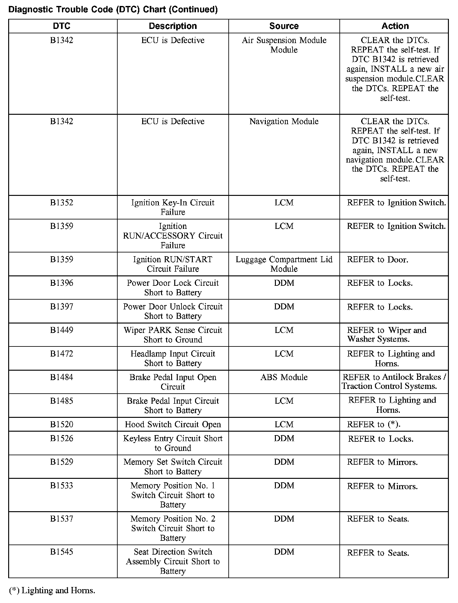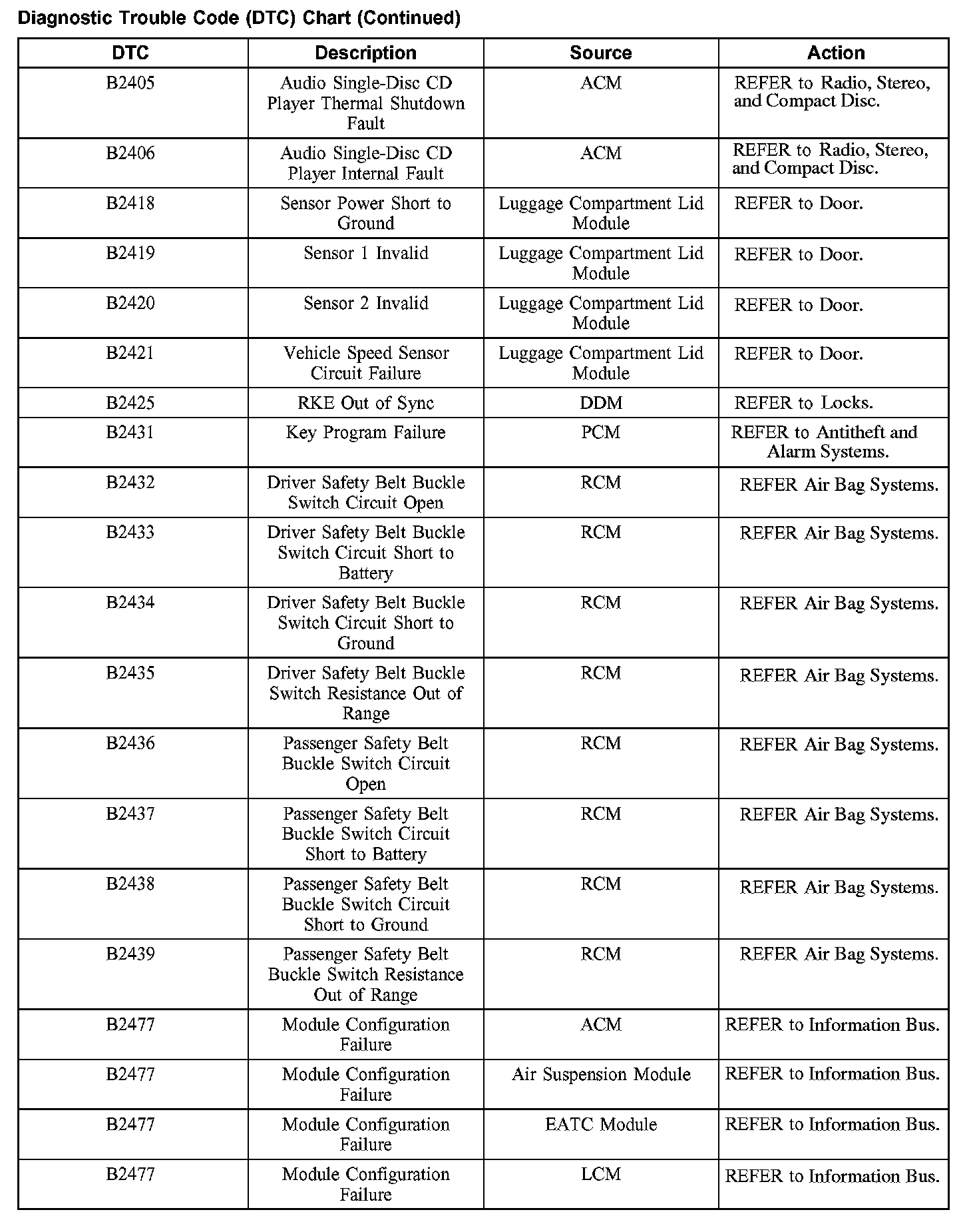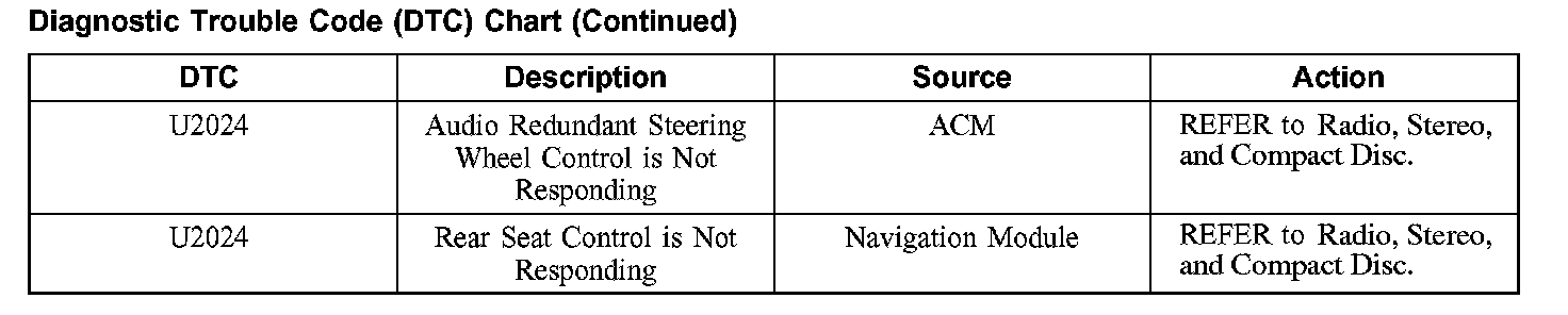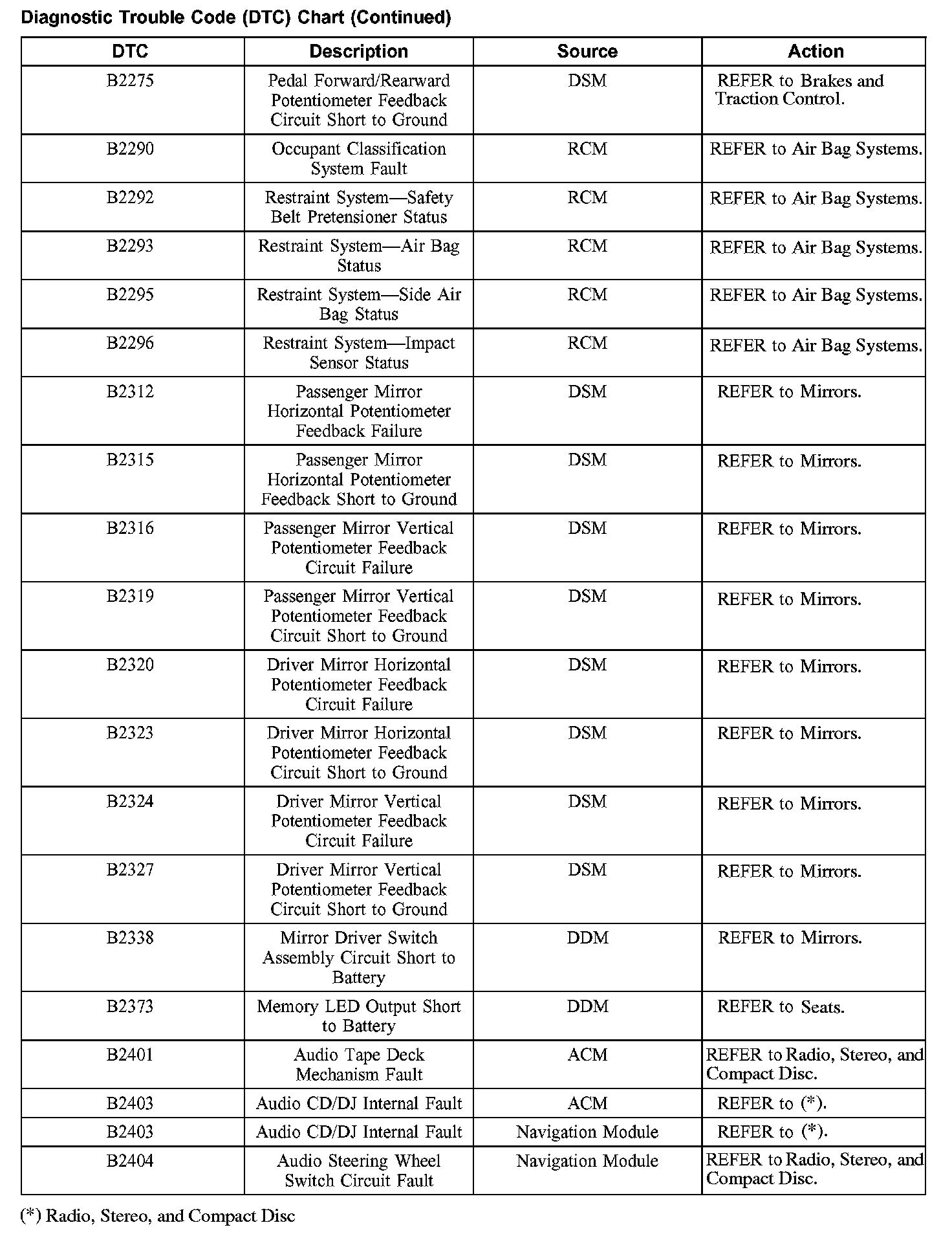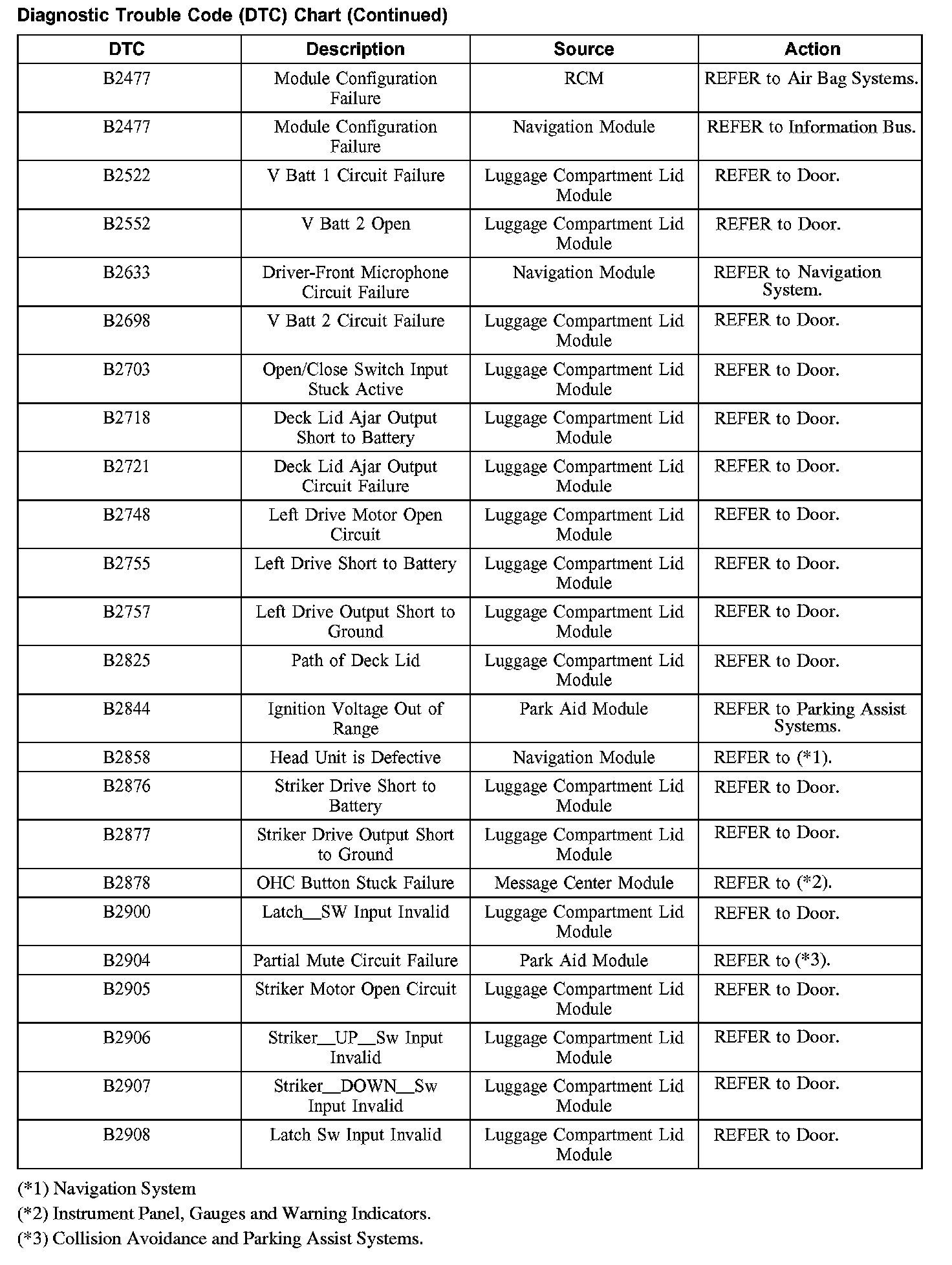 DIAGNOSTIC TROUBLE CODE (DTC) CHARTB1200-B1318: