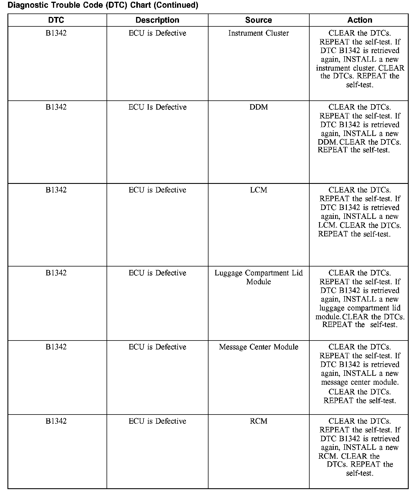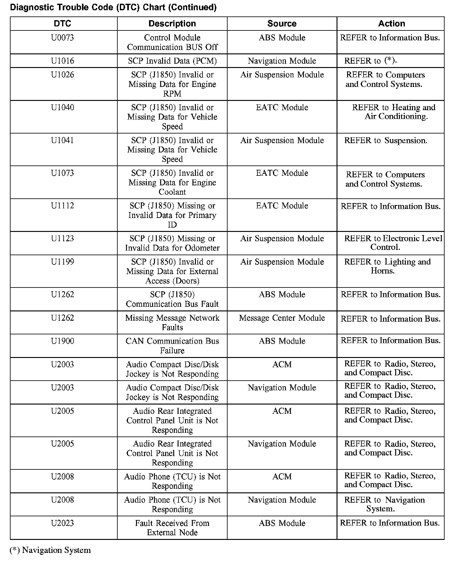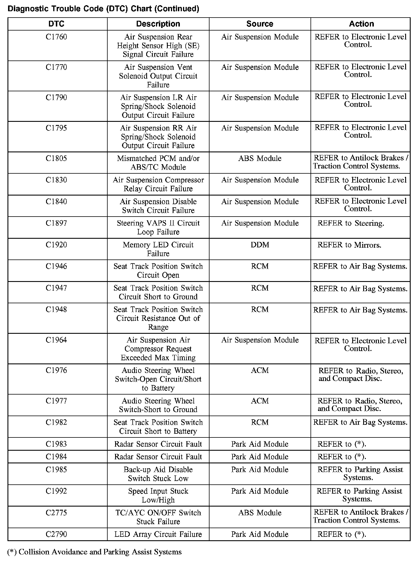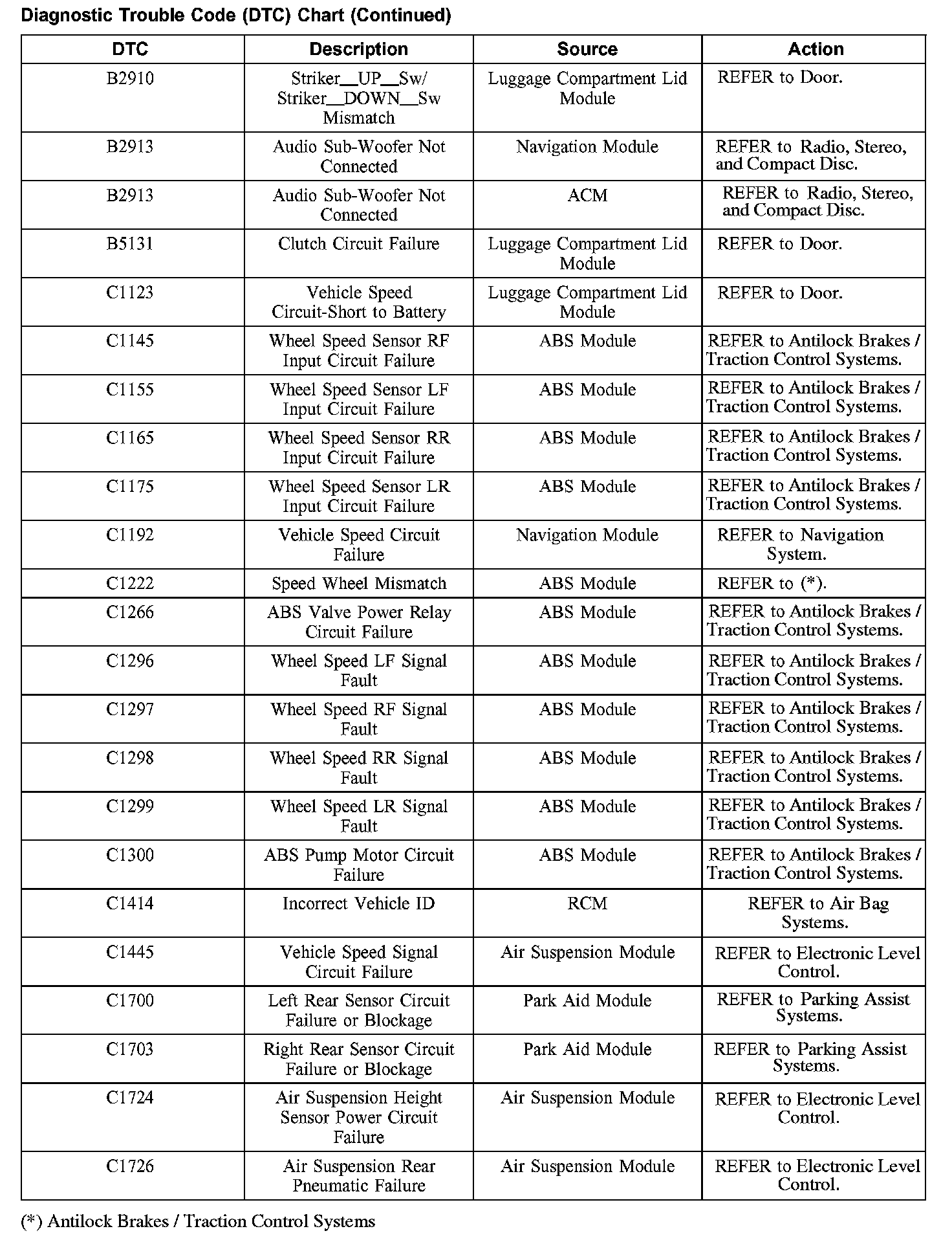 DIAGNOSTIC TROUBLE CODE (DTC) CHARTB1200-B1318: