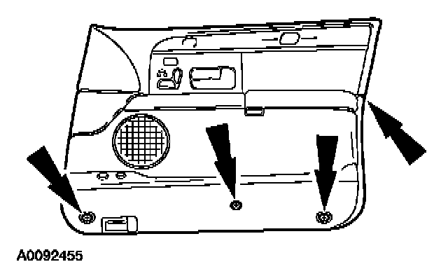 4. Remove the screws and position the front door trim panel away from the door.