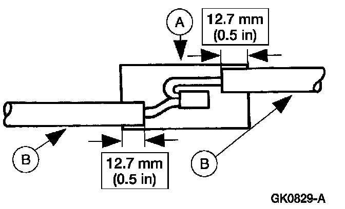 5. Position the (A) heat shrink tube over the (B) wire repair.