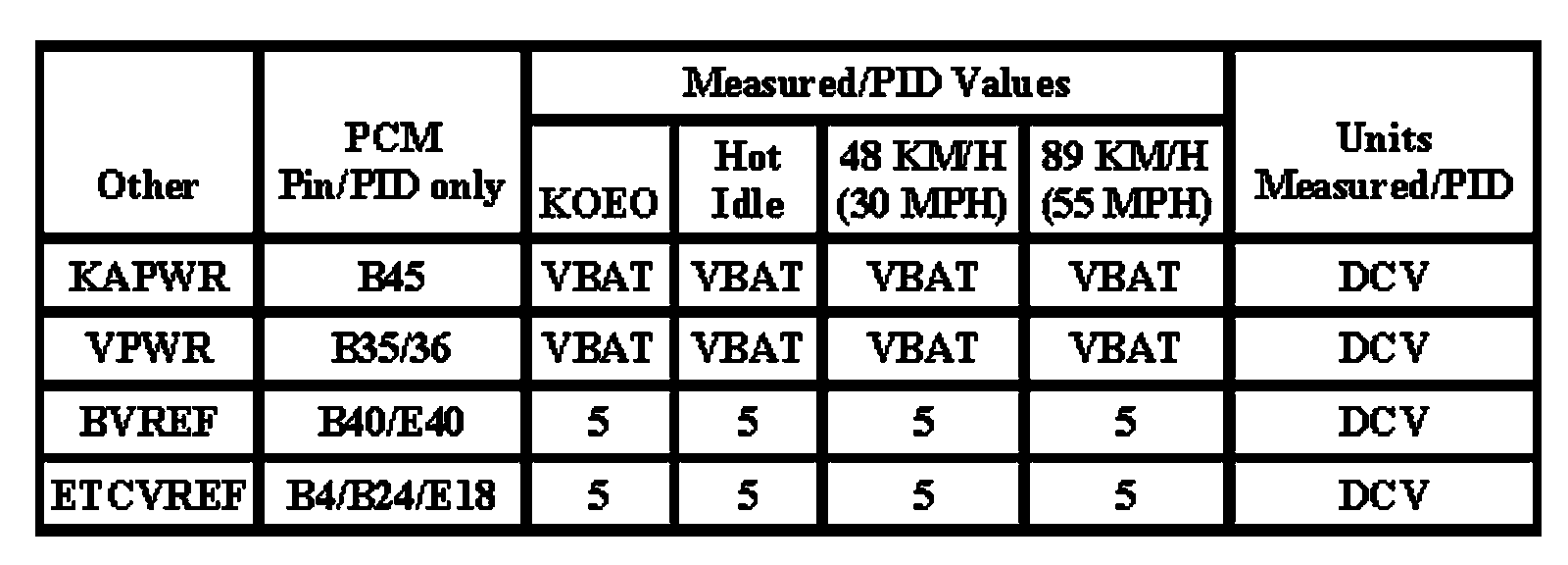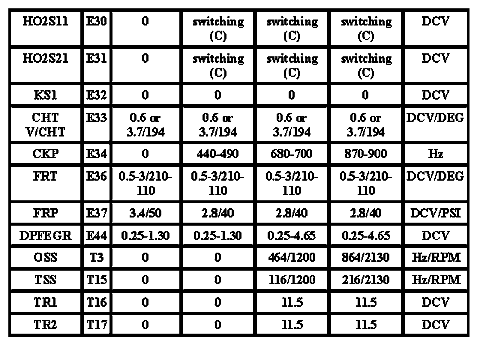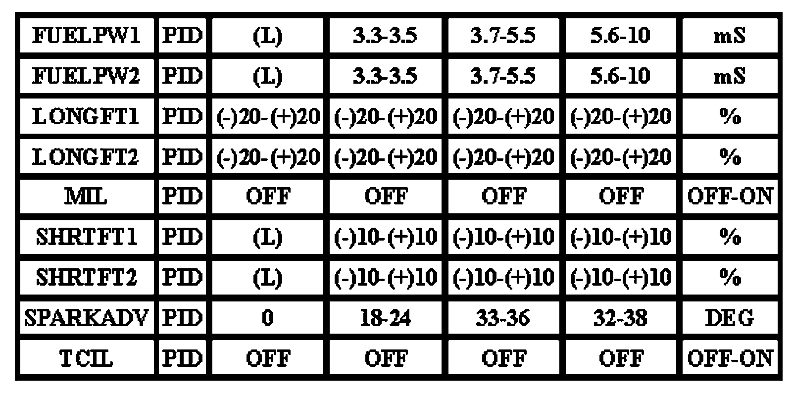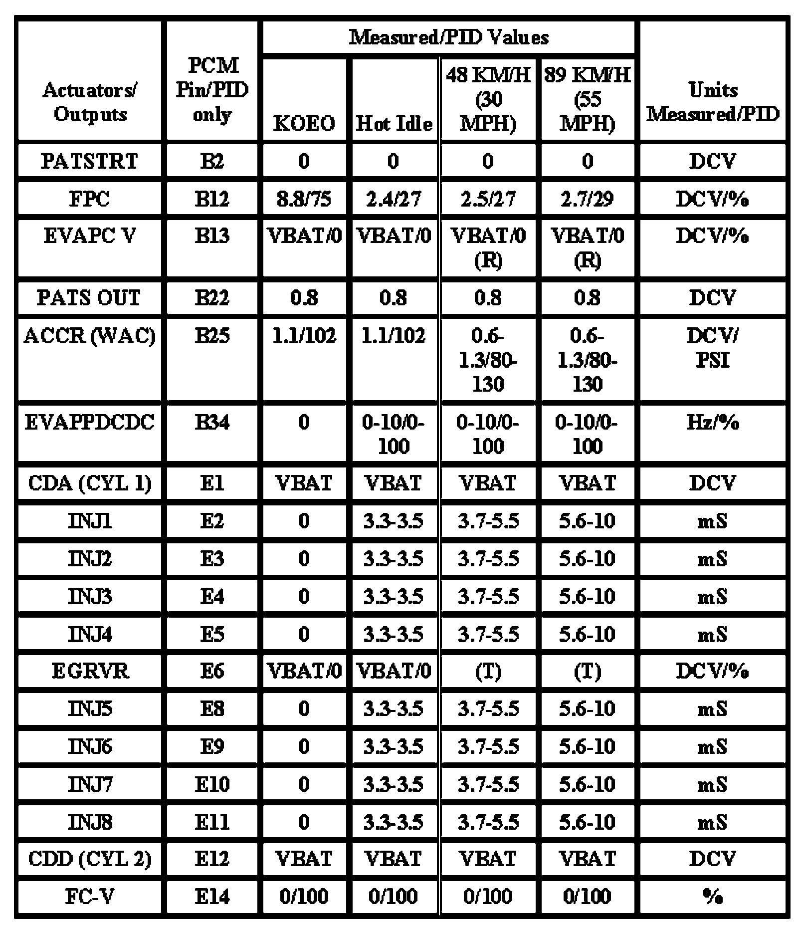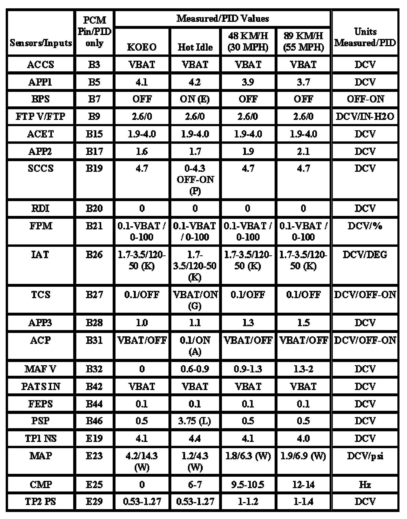 Note: All generic OBD readings under no load (PARK or NEUTRAL).