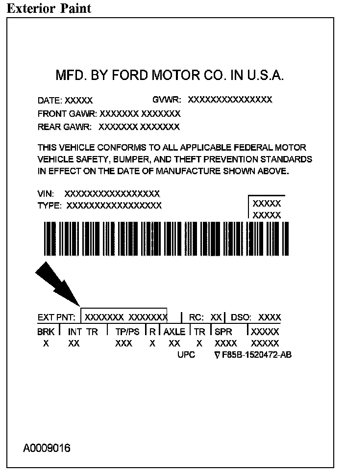 Exterior paint codes may be listed as a 2-part code. The first set of characters listed indicate the vehicle primary body color. The second set of characters listed (if applicable) indicate a 2-tone or accent body color. All codes are base coat/clear coat.