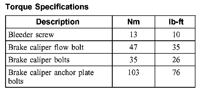 Torque Specifications, Front