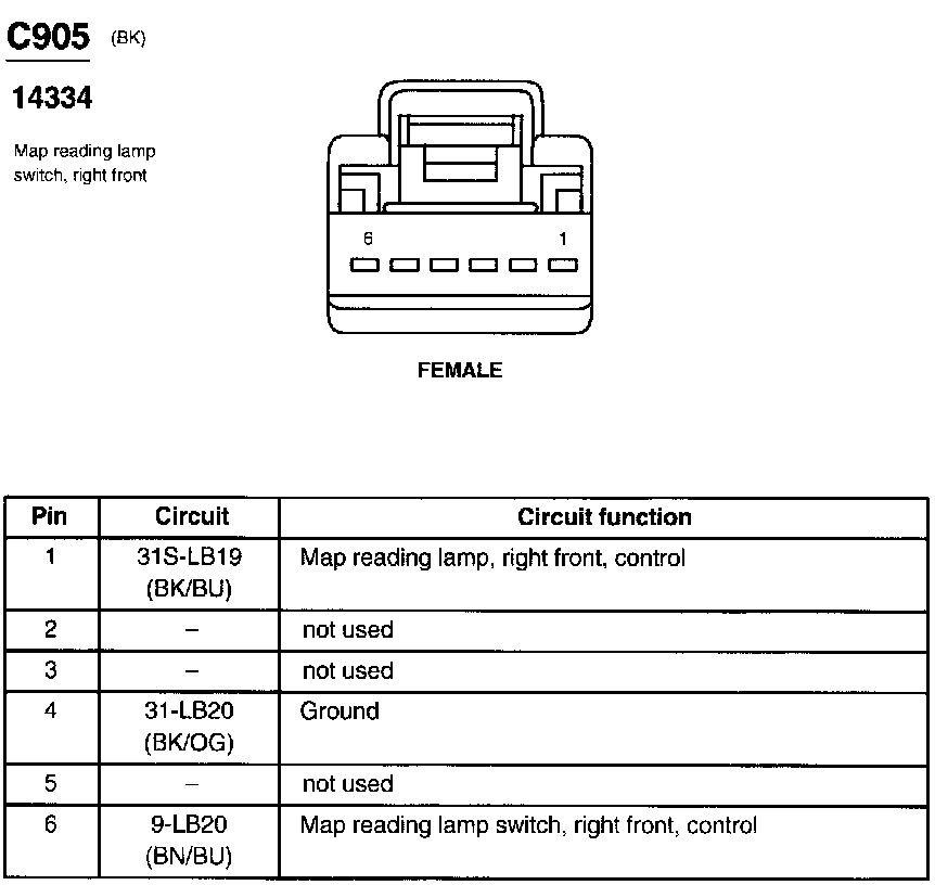 Map Reading Lamp Switch, Right Front