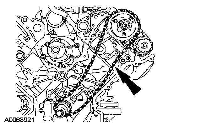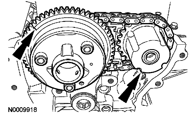 ^ Position the timing chain over the LH intake camshaft sprocket.