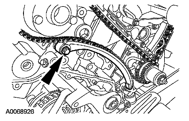 34. Install the LH timing chain tensioner arm and nut.