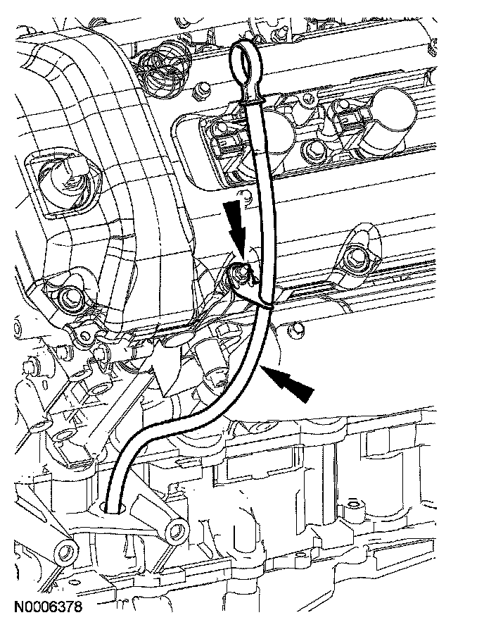 85. CAUTION: Failure to lubricate the O-ring seal and the oil level indicator tube-to-engine block mating surface with clean engine oil can result in engine oil leaks.