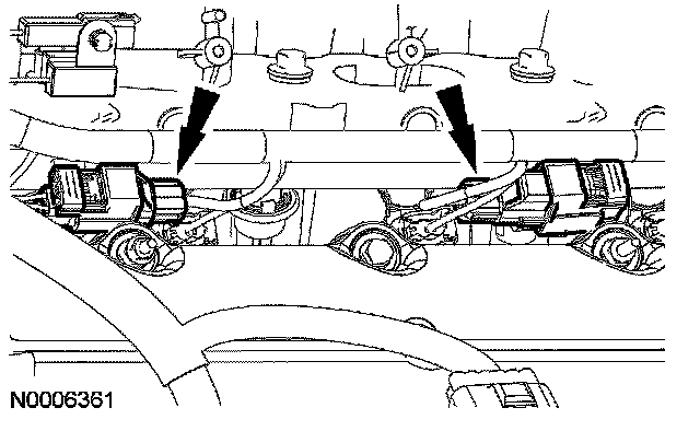 Connect the 8 fuel injectors and the 2 radio interference capacitor electrical connectors.