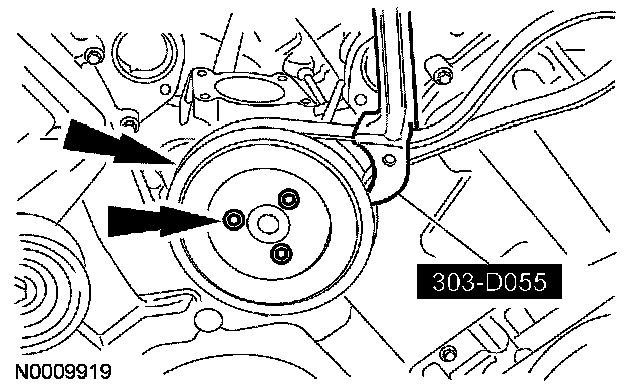 113. Using the special tool, install the coolant pump pulley and 3 bolts.