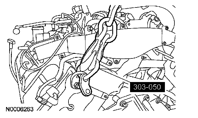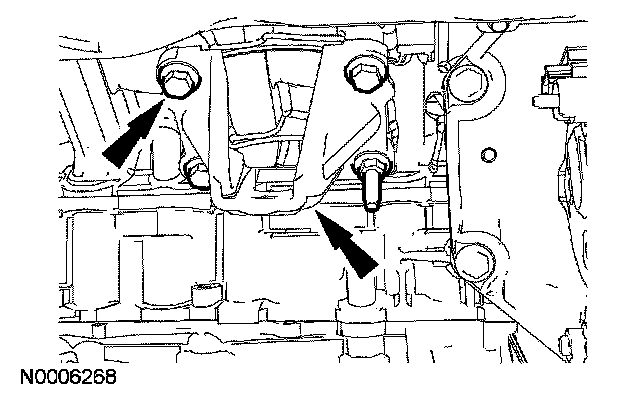 120. Install the LH engine mount bracket, stud bolt and 3 bolts.