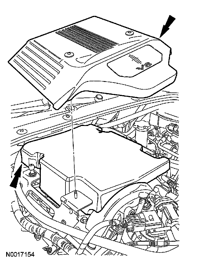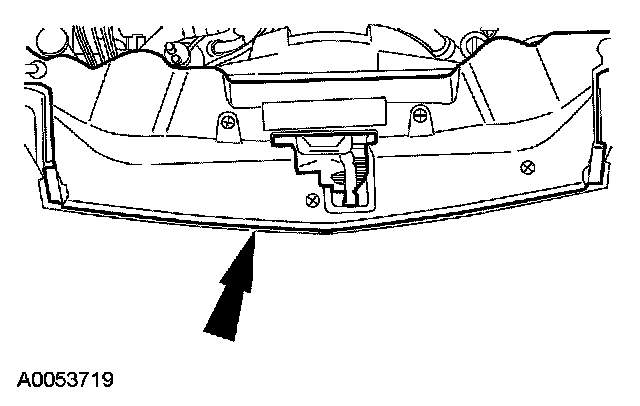 68. CAUTION: The engine appearance cover is equipped with a noise suppressor. If the noise suppressor becomes separated from the engine appearance cover it must be positioned on the intake manifold prior to installing the engine appearance cover.