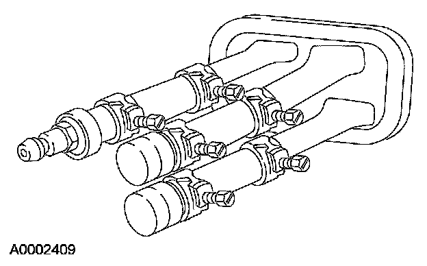 3. Connect the 101 mm (4 inch) test heater hoses with plug and adapter to the core tubes. Then connect the Pressure Test Kit to the adapter.