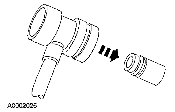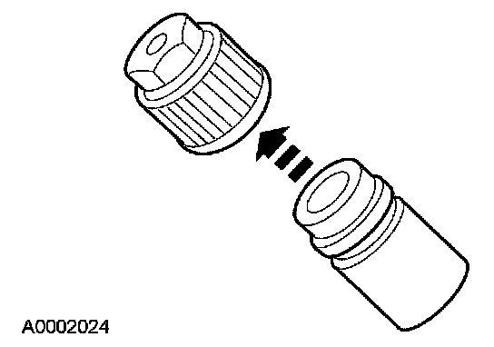 6. Remove the A/C charging valve cap from the low-pressure service gauge port valve.