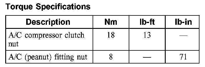 Torque Specifications: