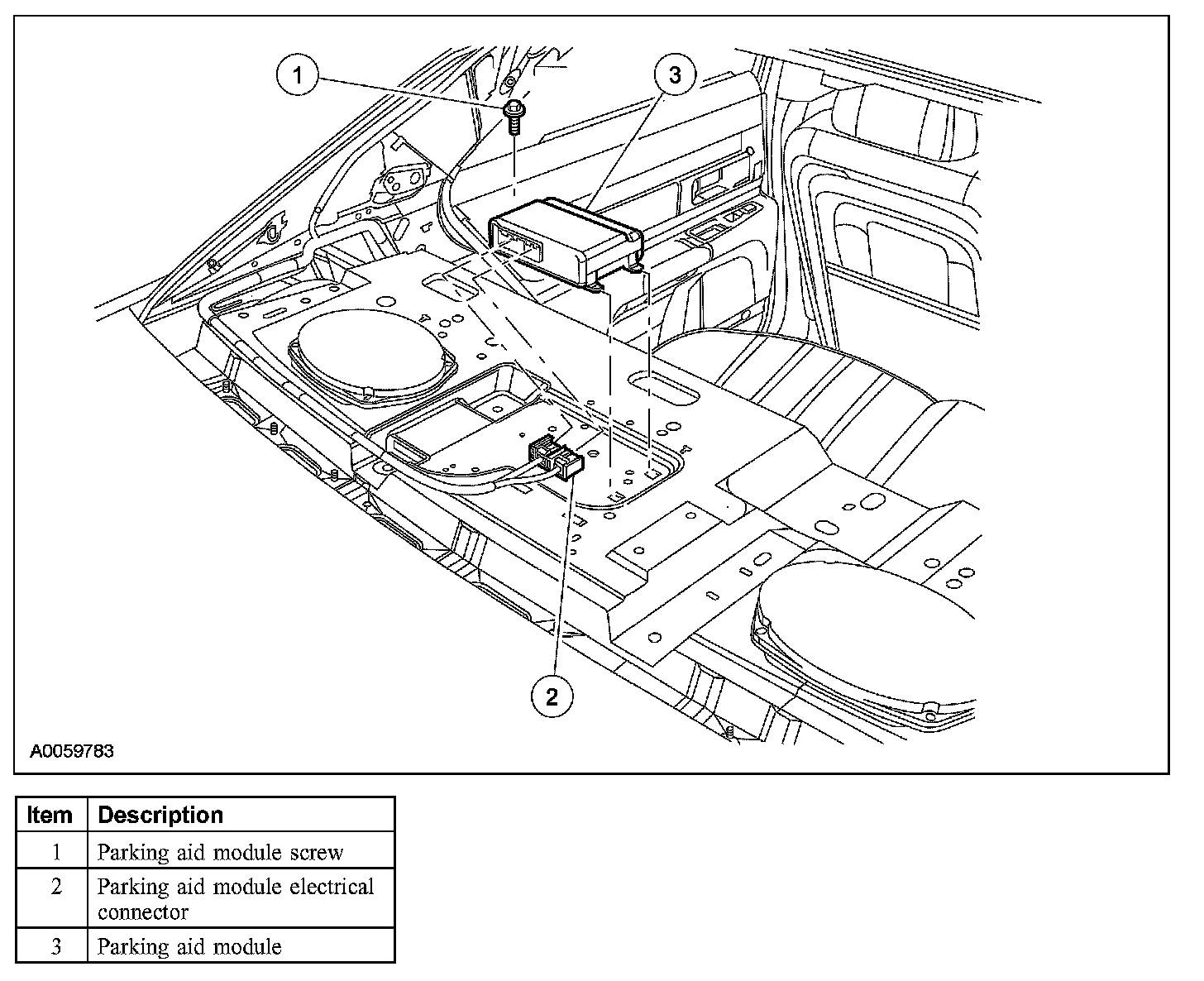 2. Remove the parking aid module and the screw.