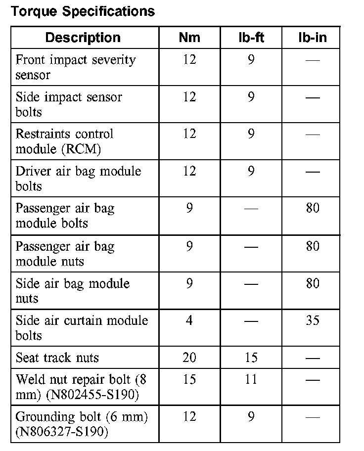 Air Bag Systems: Specifications