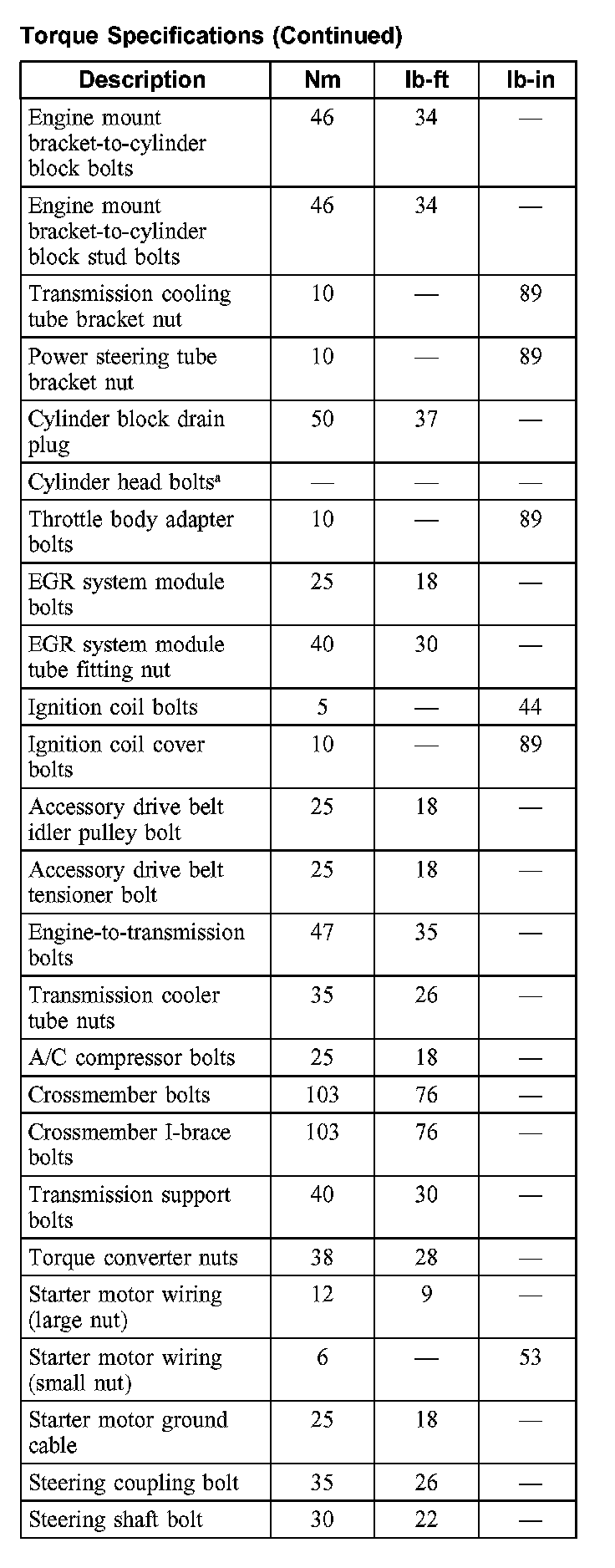 Torque Specifications