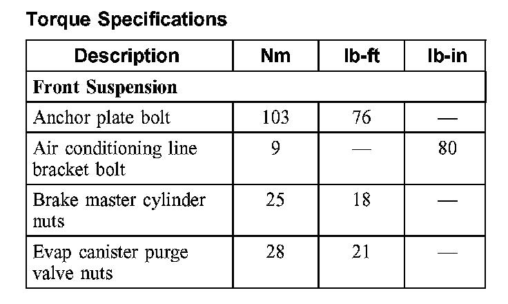 Torque Specifications (Part 1):