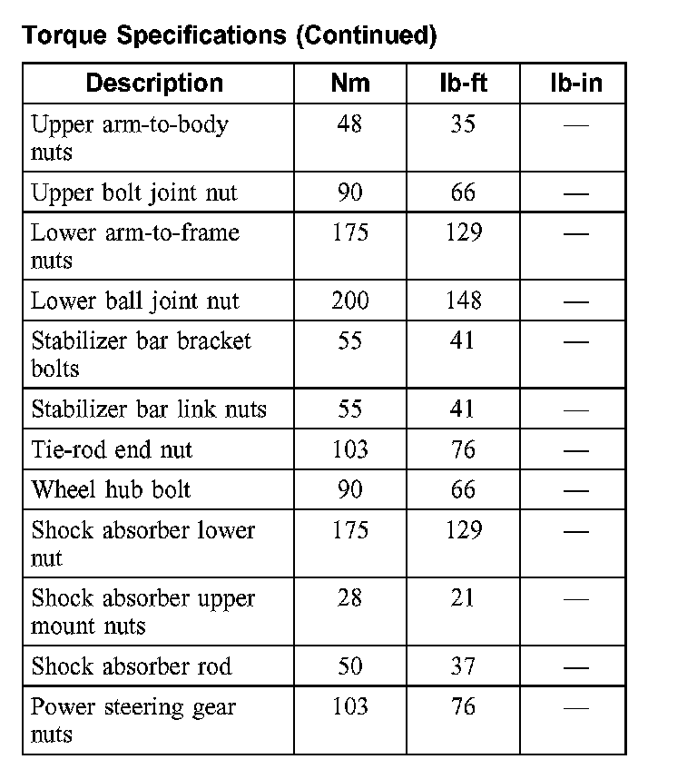 Torque Specifications (Part 2):