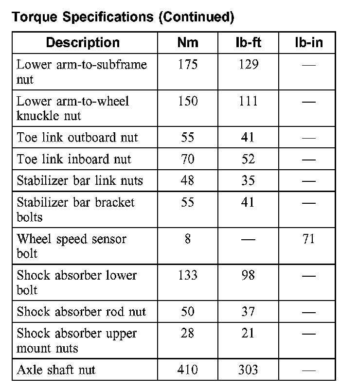 Torque Specifications (Part 2):