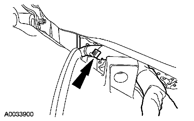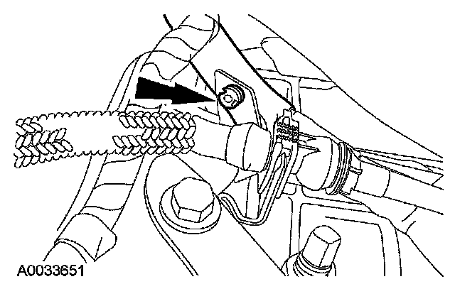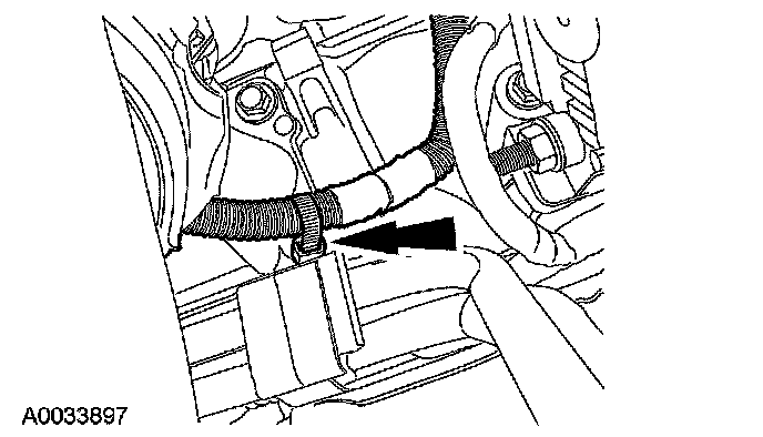 22. Connect the HO2S connector and install the sensor wire retaining clip to the RH side of the transmission pan rail.