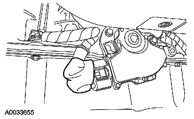 6. CAUTION: Do not damage the cooler tubes. Hold the transmission case fitting with a wrench.