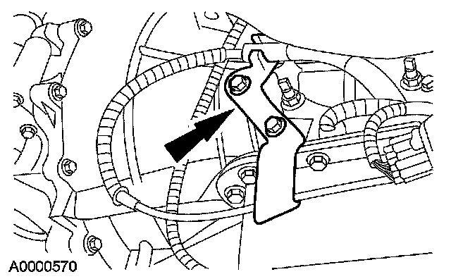 16. Install the wire harness to the top of the transmission shift cable bracket.