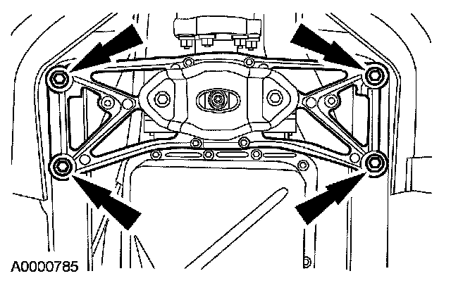 19. Position the rear transmission crossmember and install the transmission crossmember-to-floor pan screws.