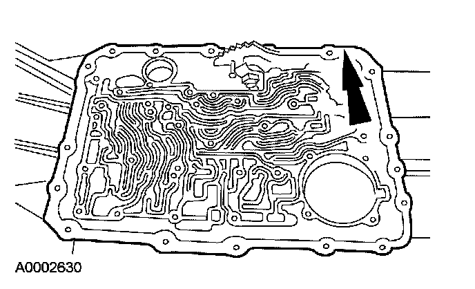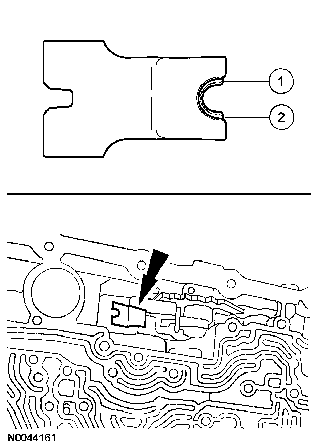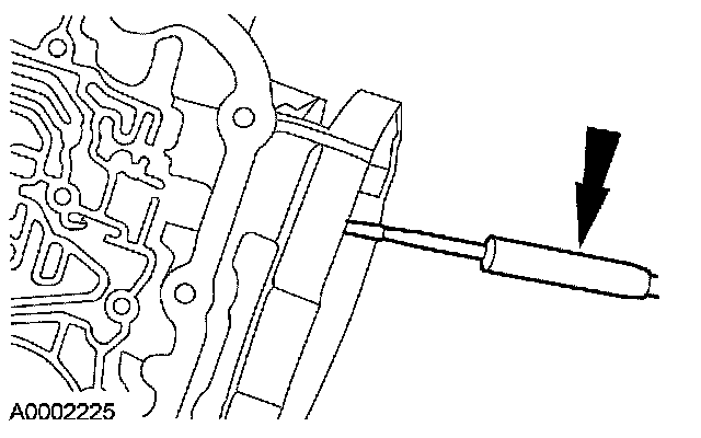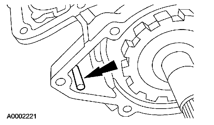 12. CAUTION: Use care not to damage the fluid pan rail surface when installing the retaining pin.