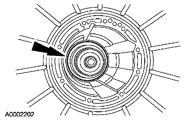 33. Install the No. 6B forward clutch thrust washer onto the forward ring gear hub.