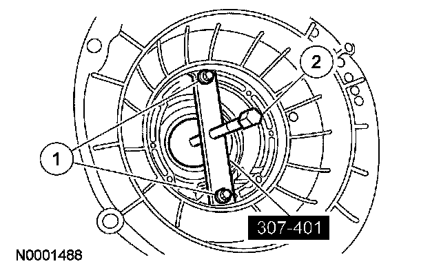 1 Install the special tool and the bolts using the 2 pump screw locations at approximately 6 and 12 o'clock positions.
