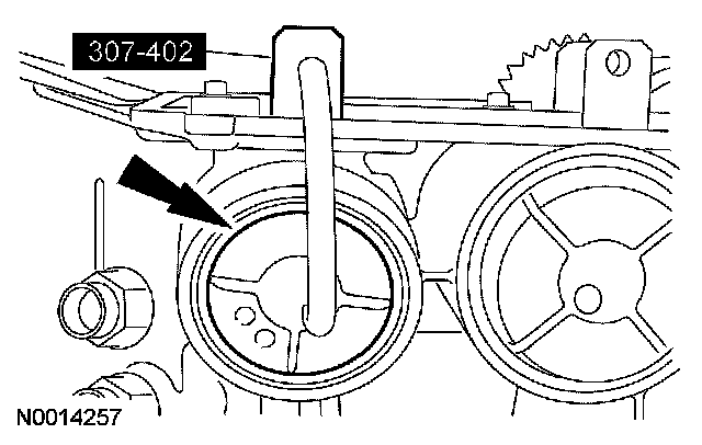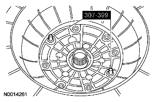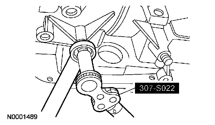 1 Install the special tool and the bolts using the 2 pump screw locations at approximately 6 and 12 o'clock positions.
