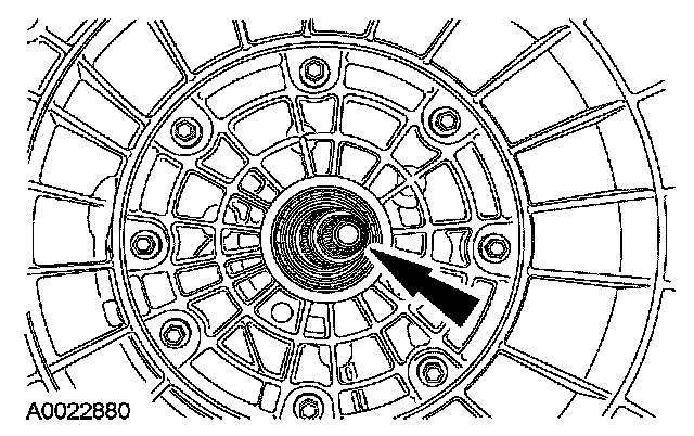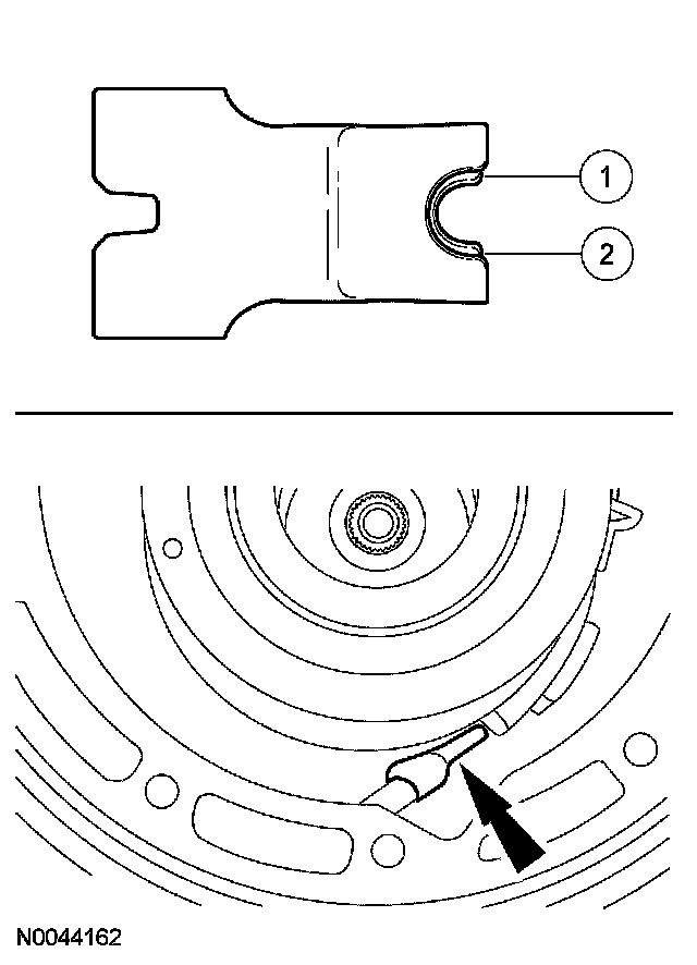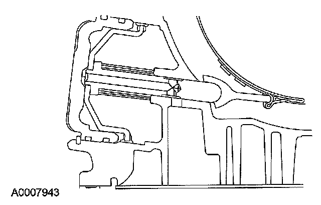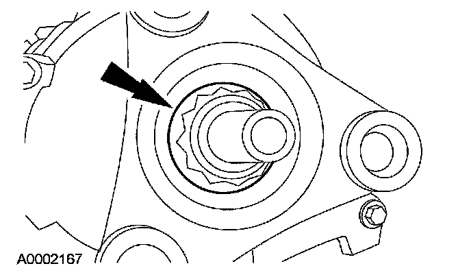 96. CAUTION: Inspect the transmission case bore to make sure it is free of foreign material and not damaged. If damaged, a transmission leak may occur.