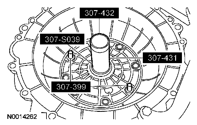 114. CAUTION: The special tool must be used to correctly align the adapter plate to the converter, or transmission damage could occur.