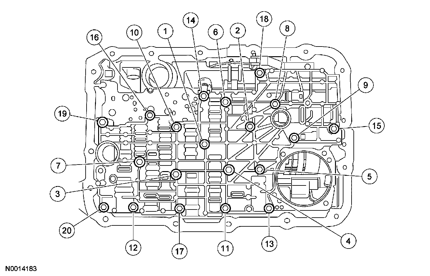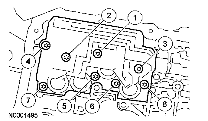 Install the solenoid body. Tighten the screws in the sequence shown.